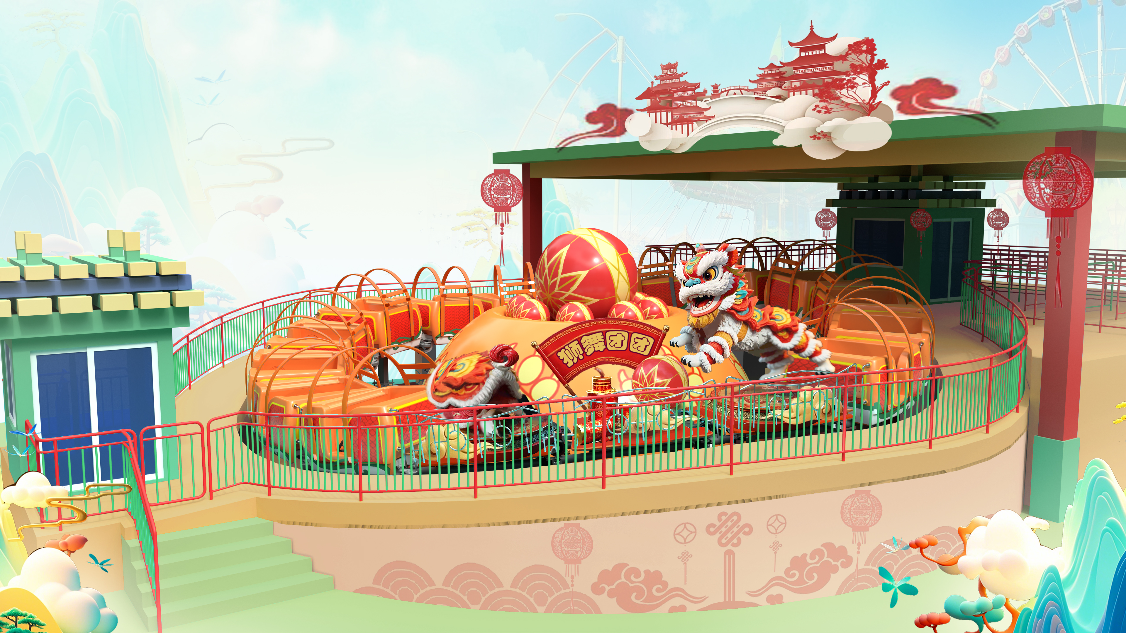 踏入舞獅座艙,與靈動舞獅一同環(huán)繞那寓意吉祥的繡球,開啟歡樂暢游之旅。于起伏的圓周軌道之上,隨舞獅急速旋轉(zhuǎn),在你追我趕的熱烈氛圍里,盡情暢享追風(fēng)逐電的暢爽。舞獅的速度逐步遞增,不經(jīng)意間,歡聲笑語便會從心底自然流露,四周的歡歌笑語亦聲聲入耳。當(dāng)座艙由低向高循環(huán)攀升、旋轉(zhuǎn),離心力呼嘯而至,氛圍瞬間狂野,乘客們的興奮之情溢于言表。此刻,身心全然沉浸于主題樂園的歡樂海洋之中。