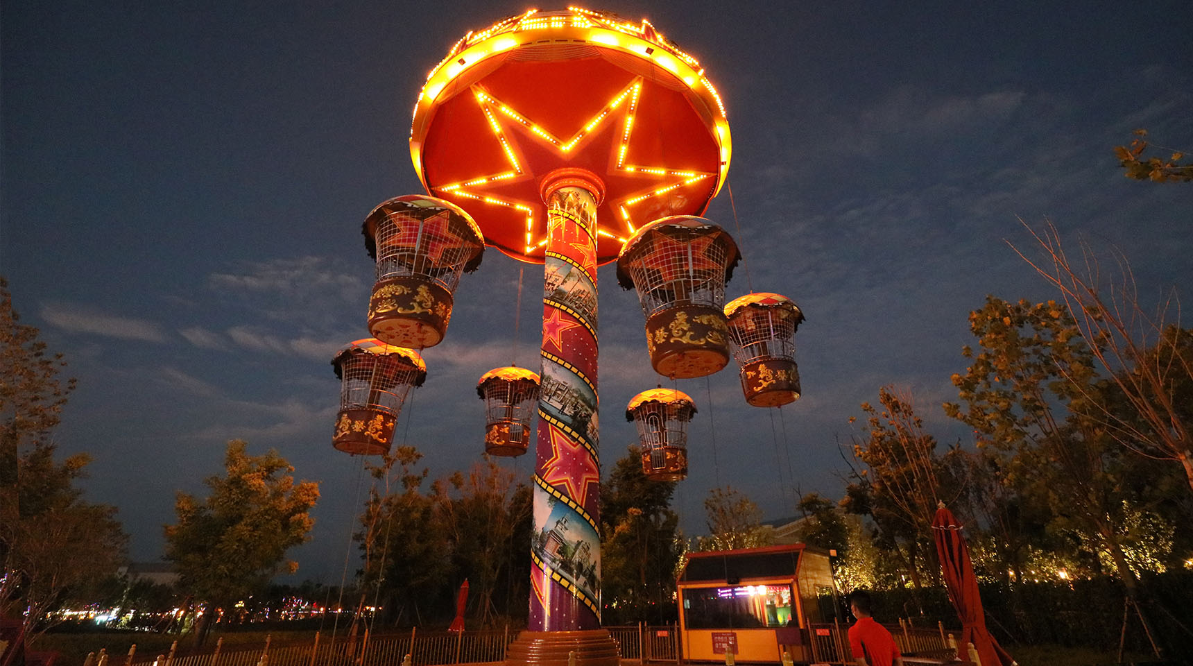 旋轉(zhuǎn)升降塔座椅以不同的高度上下運(yùn)動(dòng),并以較慢的速度旋轉(zhuǎn),30米的高度讓游客能全景式眺望風(fēng)景。定能讓各年齡段游客留下美好記憶。