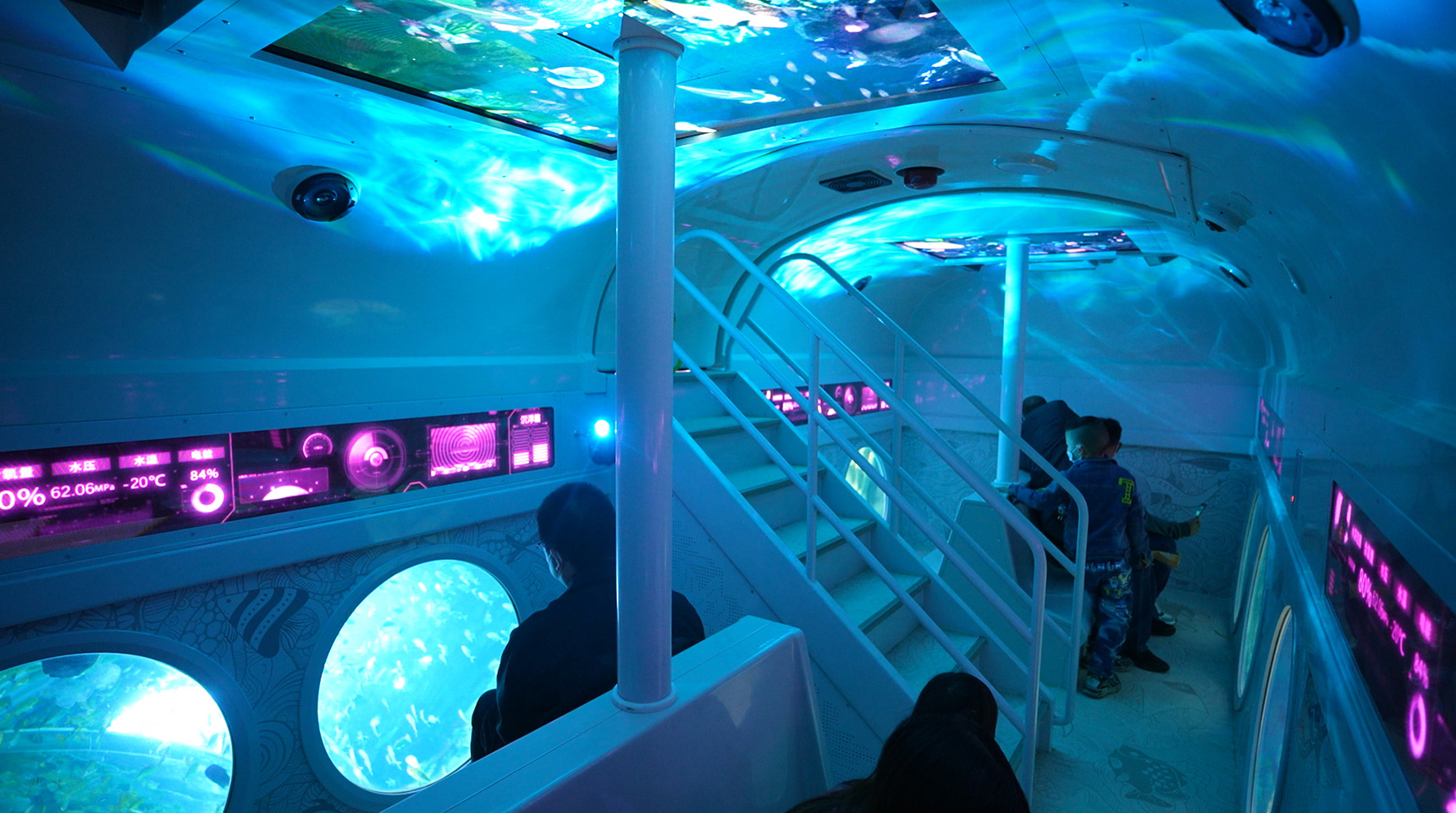 你有幻想過未來的一天到海洋的深處,探索充滿未知的深海世界嗎?我們研制的潛艇讓您的幻想變成現(xiàn)實。該潛艇配備了12個座位,內(nèi)置空調(diào)、音視頻系統(tǒng)及LCD屏幕,動力驅(qū)動半潛在精心設(shè)計海底主題景觀的水池中,環(huán)形行駛觀賞海洋生物和海底景觀,配合燈光、音響、特效,仿若置身于海底,讓游客體驗到一場充滿神奇、浪漫氣息的美妙深海旅行,潛艇探險是老少皆宜的全家庭游樂項目。